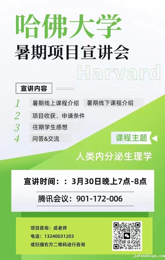 关于报名2023年暑期美国哈佛大学人类内分泌生理学实地项目的通知