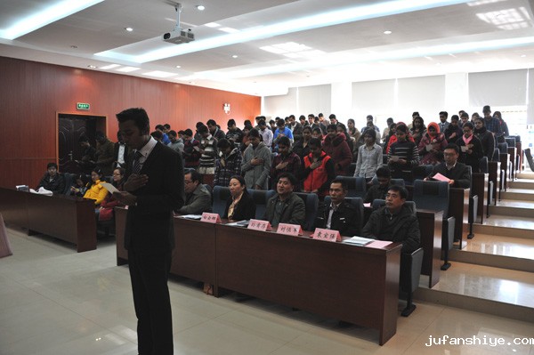 12月31日上午,我校2013级留学生开学典礼在行政楼101会议室举行。校领导吴永平、郑葵阳、蔡红星及教务处、学生工作处、后勤管理处、保卫处、对外合作与交流处等相关部门负责人参加典礼。出席开学典礼还有研究生导师代表、教师代表、国际教育学院全体教师、留学生新生62人以及部分老生代表。典礼由国际教育学院院长孙红教授主持。