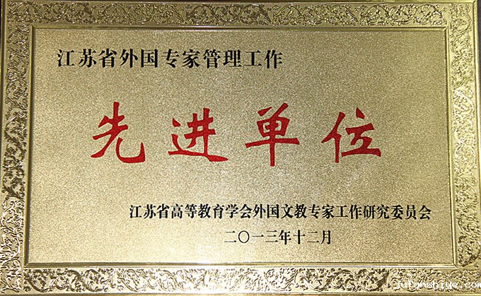 12月27日,江苏省外国文教专家工作研究会2013年年会在南京师范大学召开,会上揭晓了2013年度外国专家管理工作先进单位名单,我校因在外专工作中管理规范、成绩显著被评为2013年度外国专家管理工作先进单位。