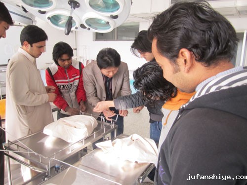 为进一步加强留学生的实践操作能力,提高留学生临床技能水平,我校近日对2006级留学生进行了临床技能操作培训。
