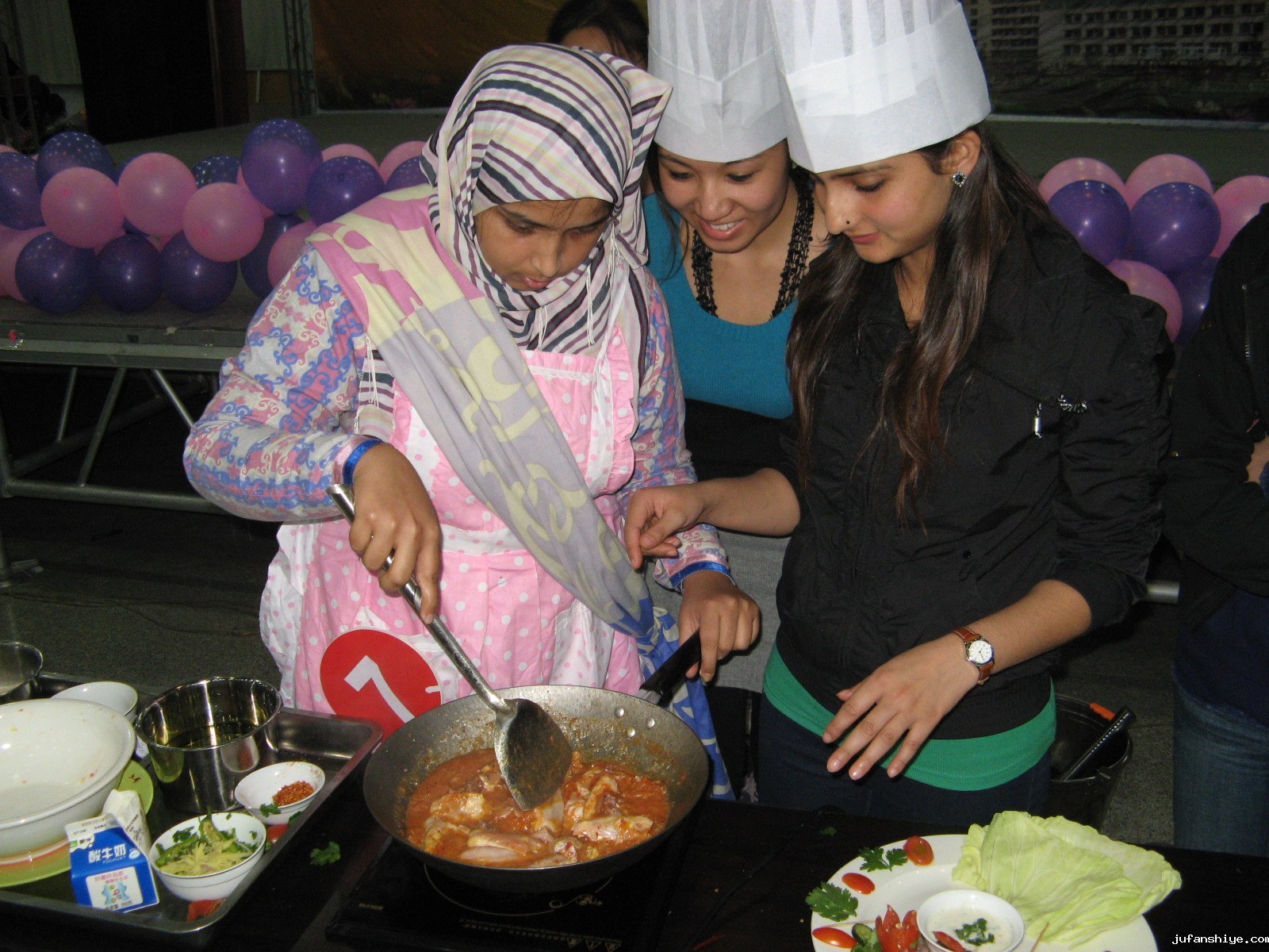 在日前结束的以“弘扬健康饮食精神,发展校园餐饮文化”为目的的“金秋十月”烹饪大赛中,我校2006级留学生充分展示了他们精湛的厨艺,夺得烹饪大赛“优秀奖”。