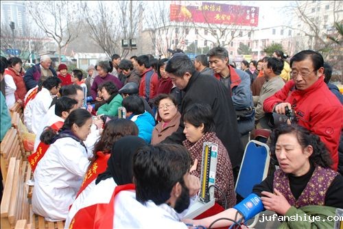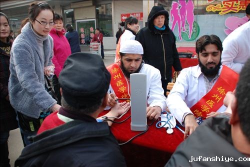 3月5日是毛泽东同志“向雷锋同志学习”题词发表的纪念日。当天下午,在国际合作与交流处的组织下,我校12名留学生志愿者和附属医院三位专家一起来到永安街道办事处煤建路街心广场,进行健康知识宣传和义诊活动。这些来自尼泊尔、印度、巴基斯坦等国家的姑娘、小伙,配合专家的义诊,细心地为社区居民们量血压、测身高体重、宣传健康知识,受到社区居民的热烈欢迎。