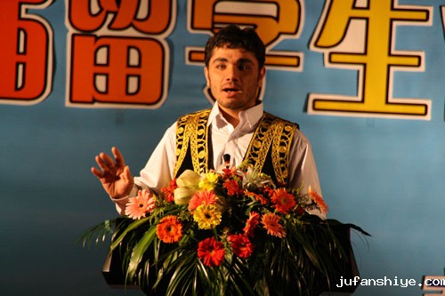 共有11名留学生参加比赛,他们胸有成竹、准备充分。第一位登台的是来自尼泊尔的Satish同学,他以出色的表现证明了自己战胜了第一次登台演讲的紧张;Sonya同学动作端庄儒雅,饱含深情地歌颂了美丽的徐医。评委和观众无不被留学生精彩的演讲所打动,时时报以热烈的掌声,现场气氛非常活跃。比赛间隙,留学生演唱的中文歌曲《康定情歌》更是令大家眼前一亮。整个比赛高潮叠起,精彩纷呈。最终来自巴基斯坦的Aziz同学以他激情的演讲夺得冠军。