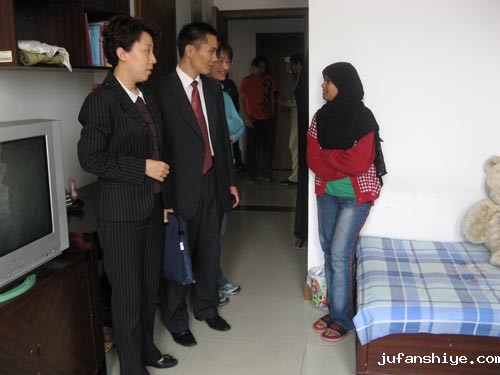 为进一步加强留学生宿舍安全和宿舍卫生工作,4月18日,国际合作与交流处邀请学工处处长白云娜,保卫处副处长刘建海等有关人员对留学生宿舍进行检查。国际处刘慎军副处长陪同检查,留学生管理办公室全体老师参加了检查。