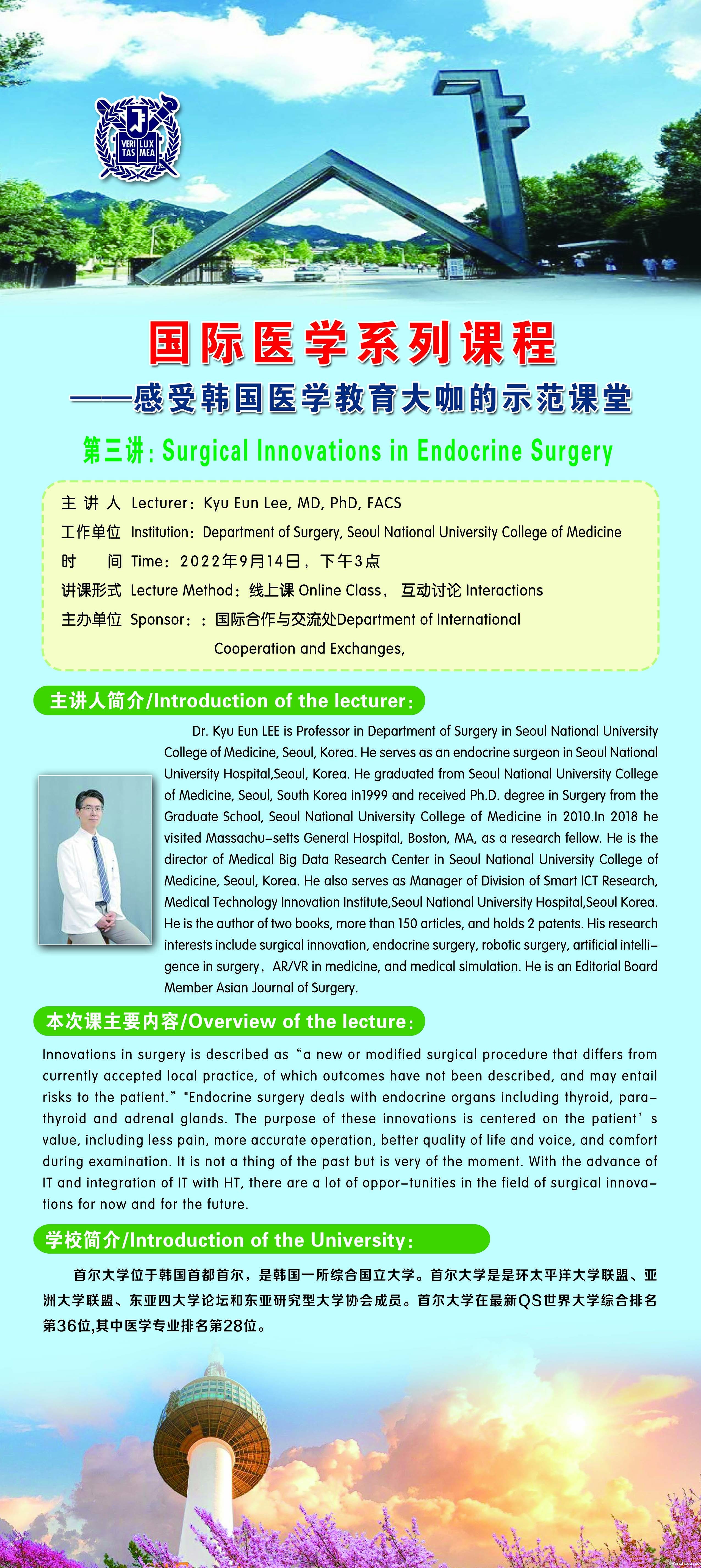 关于举办“国际医学系列课程—感受韩国医学教育大咖的示范课堂”第三讲的通知